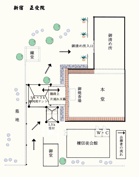 寺院で葬儀を行う場合、受付テントなどを設営したりすることを“外装設備”と言います。 ここでは、各寺院の紹介及び外装設備参考例をご紹介いたします。